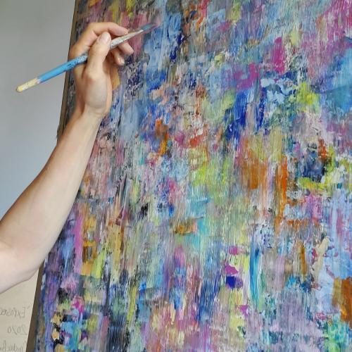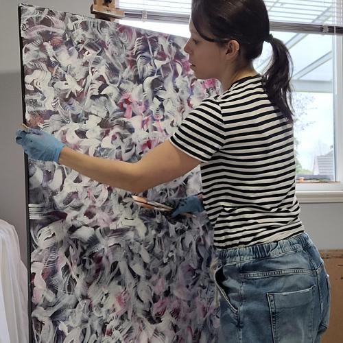 Candice is an abstract artist based in Surrey, BC. Her work is all about color—bold, vibrant, and expressive. She enjoys experimenting with layering and blending to create depth and movement in her pieces. Her process is intuitive, often guided by how the colors make her feel in the moment.